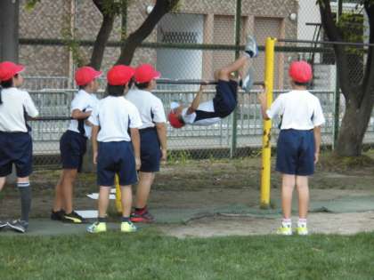 上がる技,回る技,下りる技に挑戦です。練習を積んで,難しい技もだんだんとできるようになってきました。