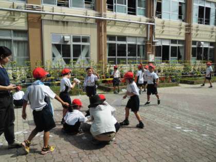 今日は,中庭で「しゃぼんだまあそび」をしました。どうしたらうまくシャボン玉ができるか,いろいろ試しながら遊びました。