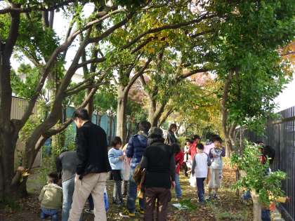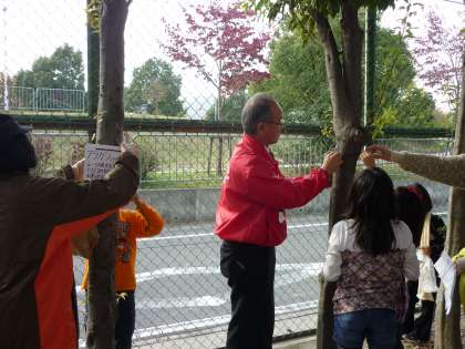 11月14日(日),児童やその家族の方々と一緒に「樹木の名札つけ」を行いました。