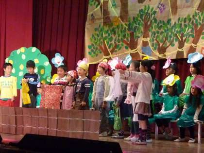2年3組,4組が出演する『せんたくかあちゃん』(劇)