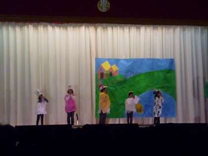 今日も,トップをかざるのは,さくらんぼ学級の劇です。6年生の応援もあり,上手に演じることができました。