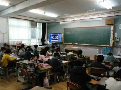 子どもたちだけでタイマーをセットし,プリントを始め,時間が来たら自分たちで答え合せをして集める,ということが習慣づいてできるようになっています。