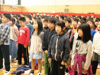 子どもたちは,校歌を元気よく歌い,お別れの職員からの言葉をしーんとして聞いていました。子どもたちを励ます,心のこもったことばをお一人お一人からいただきました。