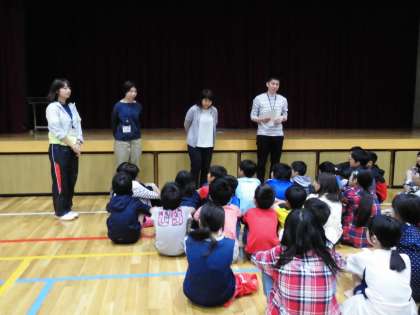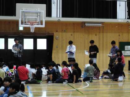 部活動の開講式を中間休みに体育館で行いました。初めに全体で校長先生からのお話と諸注意を聞きました。1年間がんばって続けること,練習にもきちんと参加することを約束しました。