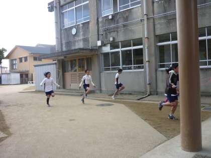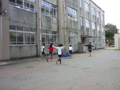 みんなではげまし合って,長い距離を駅伝のように「たすき」ならぬ「なわとび」をつないでいきました。