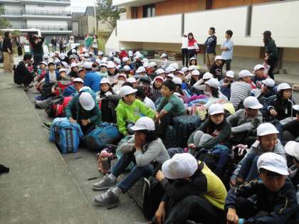 5年生は今日から花背山の家宿泊学習に出かけました。2泊3日です。朝8時半,学校で出発式をしました。