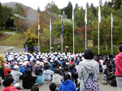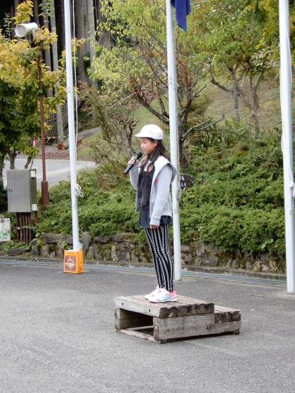 スタートは朝のつどいです。山の家を利用している4校の代表が学校紹介をしました。