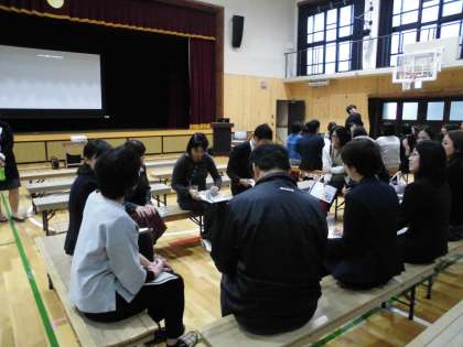 その後,小グループに分かれて,子どもたちをネットの危険性から守ることについて話しあいました。