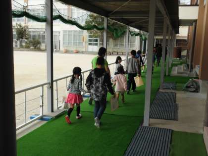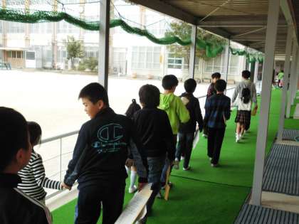 来年度の1年生の就学時健診を行いました。5年生が引率して各検査会場を回りました。手をつなぎ,やさしく誘導してくれた5年生です。検診が終わって体育館に戻ってきたころには,仲よくなっていたようです。
