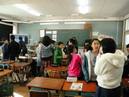 ALTとの外国語活動を行いました。担任が主に授業を進めますが,ALTの英語の発音を聞きながら,今日のフレーズに慣れていきます。