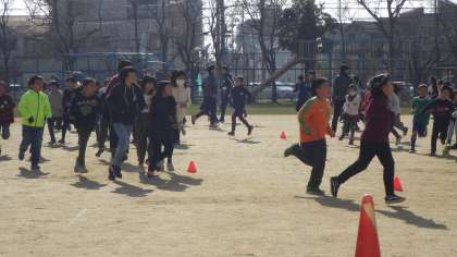 昨日悪天候でできなかったマラソン練習。今日初めて実施しました。2,4,6年生です。自分のペースで初めから終わりまでできるだけ同じ速さで走るのがめあてです。まだ慣れていないので,スタートダッシュも見られて・・・・。がんばっています!