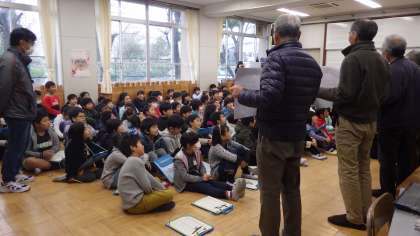 学年みんなで集まって,野鳥の話をクイズ交じりでしていただき,楽しく学びました。
