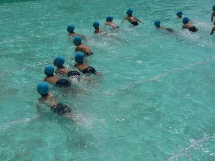 プールでの約束事の学習や浅い水量で水に慣れる学習をしました。