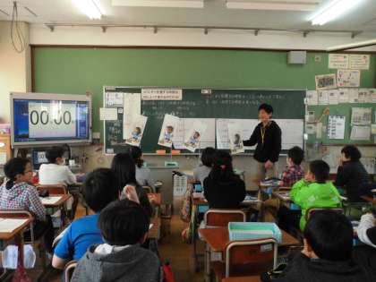 5年生は、ふりこが1往復する速さが、ふりこの長さによって変わることを調べてきました。学習の初めに見た、スピードの違うブランコの謎もわかり、この日は30秒を測れるふりこづくりをしました。長さを調整したあとふりこで30秒をはかり、みんなで手をたたくと・・・!? パンっ! 結構そろいました。さすが!