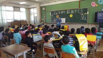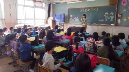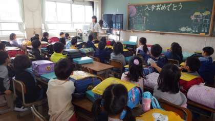 みんなちゃんと担任の先生のお話が聞けます。落ち着いた1年生です。すばらしいです。