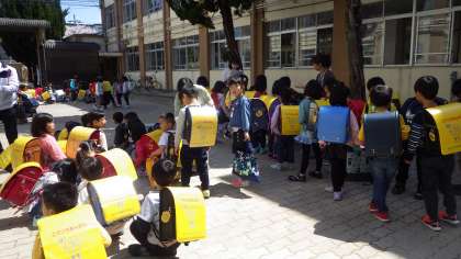 1年生はしばらくはみんなで集団下校です。途中まで教職員が送っていきます。その間に安全な下校の仕方を身に付けてほしいと思います。