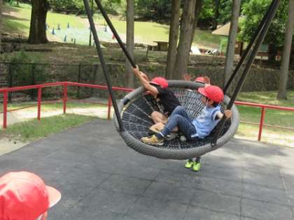 校外学習に出かけました。阪急と地下鉄を乗り継いで宝が池まで行きました。行くのに時間はかかりましたが,大きな遊具がたくさんあって思いっきり遊べました。