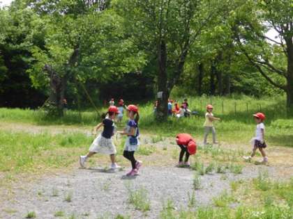 広い公園で春さがしをしました。学校では見つからない「はる」が見つかったかな?