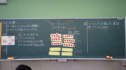 という問題をしました。ブロックを使ったり図を描いたりしながら考え,友だちと考えを交流しました。