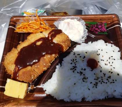 お弁当は名古屋めし、味噌カツ弁当です。おいしそう!