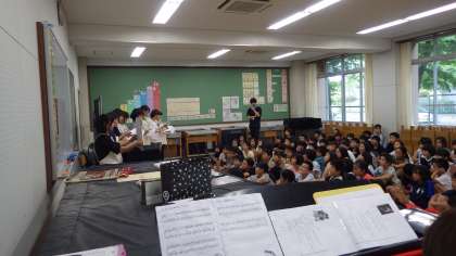 絵本サークルの方々による読み聞かせ。5年生へは,「一つぶのお米」「木のまつり」「光の旅 かげの旅」「地獄のそうべい」でした。ピアノの演奏付きで,子どもたちも集中して聞いていました。
