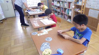 算数の時間は,一人一人に合った課題に向かって静かに集中して取り組んでいます。1組は「比」の学習,2組は「お買い物」についての学習をしていました。