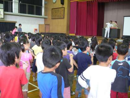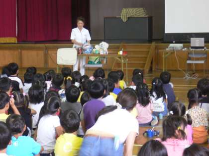 歯科衛生士さんのお話を聞いて,歯みがき訓練をしました。