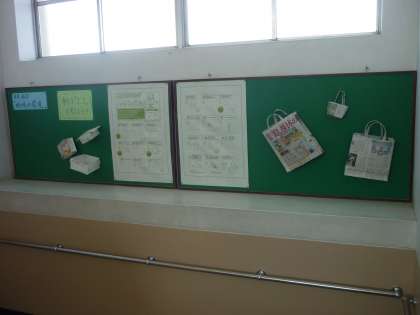 教室近くの廊下や階段付近には,身近なエコに関することを展示したり,掲示したりしてあります。