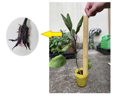 なえを 見ると むらさきいろを しているね。