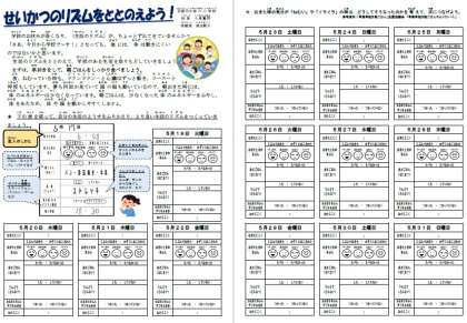 「せいかつのリズムをととのえよう!」というプリントを,来週,担任の先生に届けてもらいます。