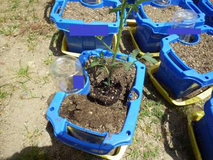 きょうは トマトのなえを みんなの うえきばちに うえました。