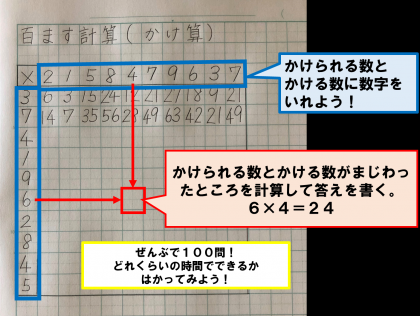 かけ算の百ます計算にチャレンジしてみよう!