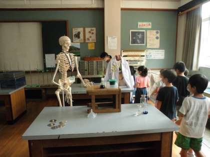 クラスみんなで学校たんけんをしました。校長室では校長先生からシールがもらえたり、理科室ではがいこつの“ほねお先生”や“ないぞうくん”に出会えたりと、楽しいことがたくさんありました。