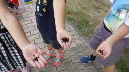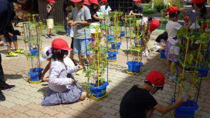 夏の間何個も花を咲かせ,心和ませてくれた朝顔のツルをぬきました。まだ残っていた種を取り,担任に茎を切ってもらい,支柱にからまったツルをはずしました。たくさんタネが取れました。さあ,このタネはどうしようかな。