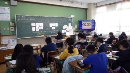 色棒を使っていろいろな三角形を作りました。仲間分けをして,「二等辺三角形」と「正三角形」について知りました。辺の長さに着目した分け方です。