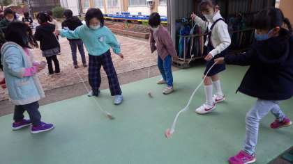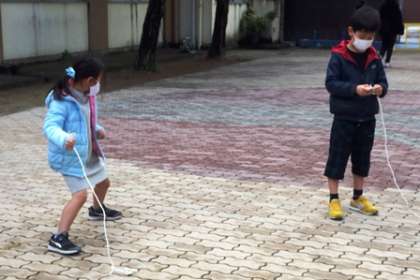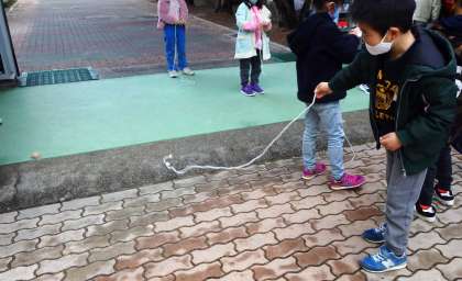 1年生は生活科の学習で「こままわし」に挑戦しています。まずはコマにひもを巻かないといけませんが,なかなか手ごわいです。何度も何度も巻き直して・・・・・・。