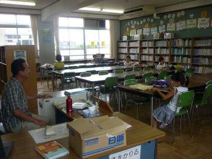 子どもたちは,夏休みに読んだ本を返したり,また違う本を借りたり,図書館で読んだりしていました。