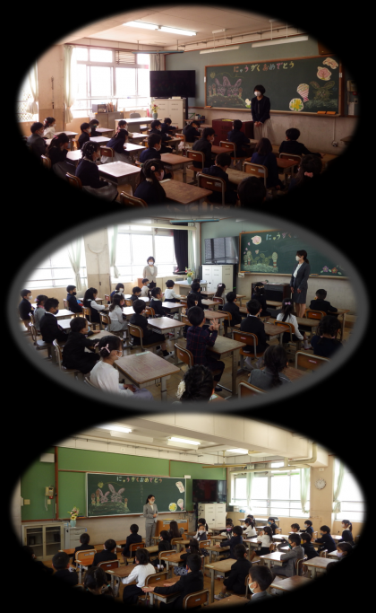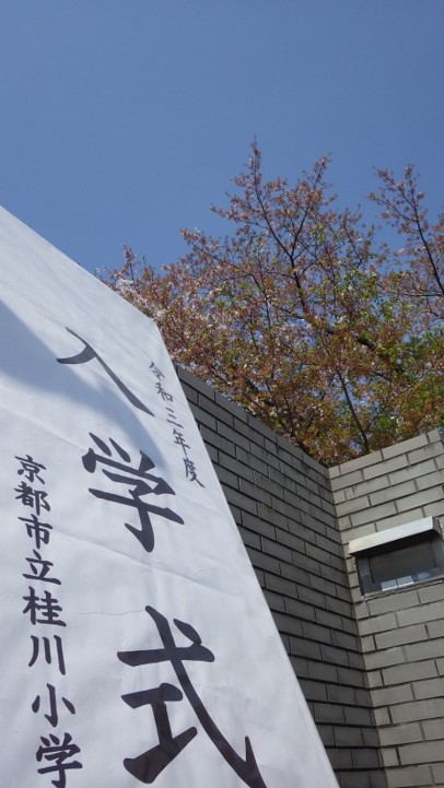サクラやチューリップの花が,あたらしい1年生の入学を