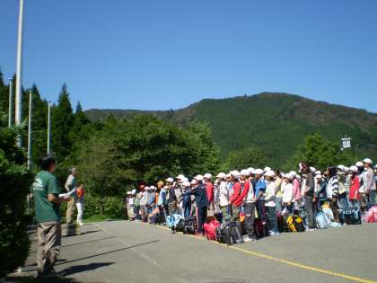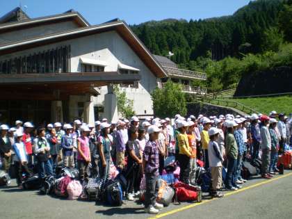 予定通り、山の家に到着しました。雲ひとつない青空の下で、さわやかな空気を感じながら入所式を行いました。5日間の山の家での活動が楽しみです。
