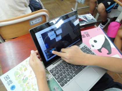 教科書では公共施設である図書館を例に利用案内やウェブページから必要な情報を読み取る練習をしました。その後,タブレットを使ってそれぞれお寺や水族館など関心のある施設のウェブページにアクセスし,スクリーンショットをとってロイロノートで交流をしました。