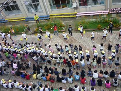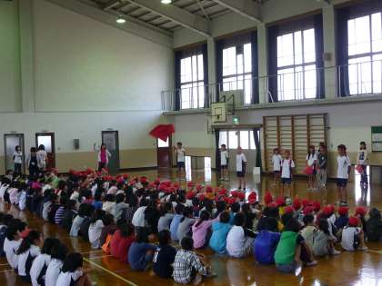 応援団の紹介のあと,応援の仕方について説明を聞きました。