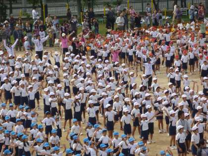 開会式の後,体慣らしをかねて「グッキー」の軽快なリズムにのってみんなで踊りました。