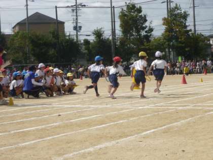 各色を代表して走ります。低学年であっても,その姿は心なしか頼もしく見えます。