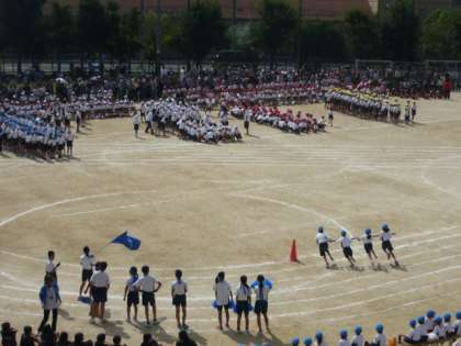 2年生と5年生がぴったり息を合わせることができるかが勝敗の分かれ目です。長い棒を操作したり,跳んだり,しゃがんだり,結構難しいです。さて,結果やいかに。