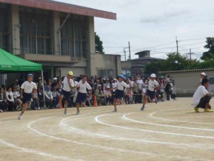 6年生の走りは,全校児童のあこがれです。自分も6年生になったらあんな走りができるんだなあ,というみんなの視線の中ゴール目指します。