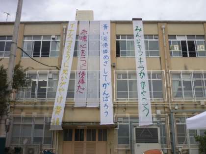 先ほどまでの大歓声が信じられないくらい,静かな運動場です。子どもたちは教室でおいしいお弁当を食べています。
