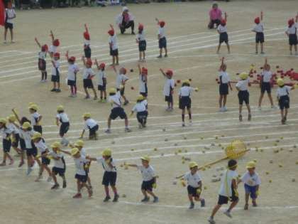 1年生は,玉入れの前にかわいらしいダンスを踊ってくれました。