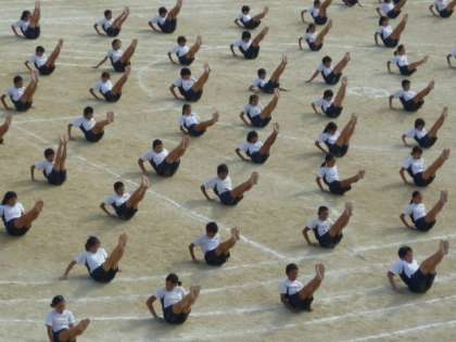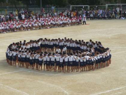 この組体操は,下級生のあこがれです。ひたむきに努力すること,仲間を信じること,決してあきらめないこと,たくさんのことを下級生に伝えてくれます。では,じっくりとご覧ください。