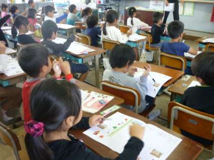 運動会が終わり,1年生も教室での学習に集中して取り組んでいます。