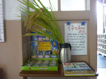 いろいろなお米のサンプルとともに展示しています。